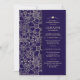 An elegant graduation invitation with stenciled flowers against a navy-blue background. The featured graduation cap topper can be dragged to any location, made larger or smaller (+-), or eliminated. (<a href="http://www.freepik.com/free-vector/graduation-poster_716543.htm">Designed by Freepik</a>). (<a href='http://www.freepik.com/free-vector/wedding-invitation-design_1060790.htm'>Designed by Freepik</a>). <br/><br/>The card is easy to customize with your wording, font, font color and choice of six paper types.<br/><br/>Not exactly what you're looking for? All our products can be custom designed to meet your needs at no extra charge.<br/><br/>Simply contact us at heartfelthelper@gmail.com<br/><br/>Coordinating products available: