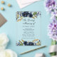 Navy Floral Leaf Clear Acrylic Memorial Service Invitations