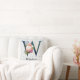 Vintage patterned background, large navy monogram letter W and beautiful floral embellishments. Personalize with name