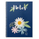 This charming notebook cover features an elegant navy blue background adorned with a vibrant floral arrangement, including daisies, pastel pink and blue flowers, and delicate greenery. The modern script "Notes" stands out beautifully, making it perfect for journaling, schoolwork, or creative ideas. This design brings a fresh and calming aesthetic to your everyday writing experience.