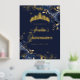 Navy Floral Swirl Quinceanera Welcome Sign Gold