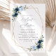 Invite friends and family in style and set the tone for your special day with this charming birthday invitation. Design features navy and blue watercolor flowers, greenery and gold frame on white background.