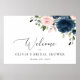 Navy Flowers, Pink Flowers, Bridal Shower Welcome Poster