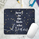 “Here’s to the fools who dream.” Be one of those who always lets their optimism control their vision and aspirations. This rich, modern, graphic, minimalist mousepad combines white bold, san-serif typography and handwritten calligraphy script, against a midnight navy denim background sprinkled with faux gold foil stars. Great inspirational quote to inspire you all day long. Wonderful for your morning dose of motivation.