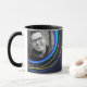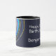 21st birthday, own name and photograph navy circle patterned mug. Uniquely design by Sarah Trett. Makes a great gift for a brother, son, grandson, husband, lover or friend. Place your favourite image into this design, and update the text with their age and name.