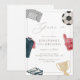 Celebrate your soccer lover with this navy “Game On” soccer birthday invitation. This bold and sporty design is perfect for a soccer themed birthday party for kids of all ages.