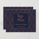 Congratulations on your engagement! Now it's time to share your fantastic news with your nearest and dearest with this elegantly classic Art Deco navy blue and rose gold diamond pattern custom save the date! Customise with your details and you're good to go! This card is part of a curated and coordinated wedding collection called "Art Deco Wedding" in the Celebrations Studio store where there is a range of matching wedding stationery, decor and mailing products.
