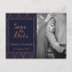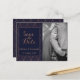 Navy Gold Art Deco Photo Save the Date Postcard