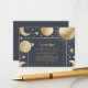 The enclosure card provides space for additional details or information, such as special instructions, a schedule of events, or a heartfelt message. The text is elegantly presented in a combination of modern calligraphy and classic serif fonts, embossed in gold foil to harmonize with the celestial elements and add a touch of luxury.