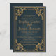 Luxurious navy blue and gold wedding invitation with ornate vintage corners and classic typography, featuring fully editable couple names, ceremony date, time, venue, and reception details for a sophisticated black tie celebration.