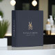 Keep track of your appointments, customer data and more with this chic black binder for salons and hairstylists. Design features two lines of custom text in classic white lettering on a navy blue background adorned with a floral scissors illustration in faux gold foil. Add additional custom text to the spine. Please note: this binder is a mini size.