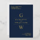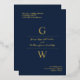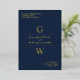 Elegant informal wedding invitation in navy blue with a gold foil typography design with your initials.