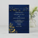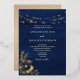 Elegant navy blue wedding invitation with real gold foil floral accents and string lights, perfect for a winter or evening celebration. Includes a modern QR code for easy RSVP access. Sophisticated and convenient, this invitation sets the tone for a magical event.