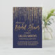 Navy Gold Glitter Fringe Curtain Bridal Shower Invitation