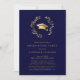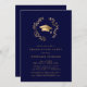 Navy Gold Grad Cap Wreath Chic Graduation Party Invitation