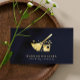 Modern, elegant navy and gold cleaning services business card. Design features faux foil texture gold logo with cleaning icons , your name or business name and title on the front. Personalize further with your contact details in the back. Perfect for domestic and industrial cleaning services.