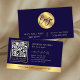 Elegant real estate agent business cards with QR code in navy blue and gold design with space for your logo. Create professional QR code business cards for your business using this faux gold foil effect business card design. Use this business card design for real estate brokers, sales agents, loan signing agents or any other professional.