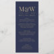 Navy Gold Monogram Wedding Menu. Beautiful navy and gold design with modern typography and couple's initials in antique gold colored text on navy blue. Personalize with the bride and groom's initials, wedding date, wedding menu and adjust the invitation sample text and or colors as you wish.
