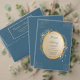 Navy Gold Oval Floral Boho Wedding Invitation