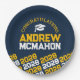 Navy Blue & Gold Yellow Personalized Graduation Paper Plates - Half Repeating Congratulations .