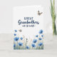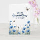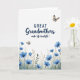This card features a white background with a navy blue message centered near the top, where the word “Grandmothers” is written in flowing, cursive-style lettering that feels gentle and affectionate ❤️. The remaining words appear in the same navy tone, arranged in a neat, easy-to-read layout above the artwork. Along the bottom edge, a band of watercolor-style botanicals spreads across the page like a quiet garden border. Blue blossoms in different stages of bloom lean toward one another, suggesting closeness and care, while soft green and golden-brown leaves fill in the stems and ground. Two small winged insects add a light, friendly touch, as if drifting through the open space between the words and flowers 🌼. The wide white area around the design keeps everything airy and calm, drawing the eye from the text down to the floral strip. One insect hovers in the upper right with warm orange-brown and pale blue details on its wings, and a smaller one floats near the mid-left above the blooms.