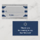 These navy blue, grey, and white Bar Mitzvah place cards would look great at your Bar Mitzvah party. These flat Bar Mitzvah place cards have a navy blue and simulated silver grey striped pattern behind a grey and white ticket shaped text area. The back is navy with white wording that says, "Thank you for coming to my Bar Mitzvah!" on it and there is a Star of David in gray above the wording that you can remove.
