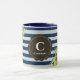 Navy Gray Stripes Watercolor Yellow Day Lilies Mug