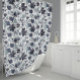 Navy Gray Watercolor Clematis Floral Pattern Shower Curtain