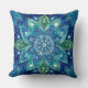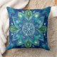 Navy Green Turquoise Mandela Boho Throw Pillow