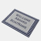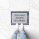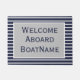 Perfectly chic, and classic navy and white with grey Welcome Aboard _________ doormat for your boat of marina slip customizable with your boats name