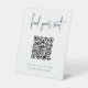 Make it easy for your wedding or event guests to find their seat with this QR code pedestal sign. "Find your seat" appears at the top, with brief instructions beneath. Enter the url for your seating assignments, and the QR code will update. Guests can scan the code to easily find their spot.