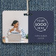 Simple, stylish navy blue corporate ID badge which can easily be personalized with your employee's ID photo, name, position, company logo and business details. The stylish black design features modern minimalist typograhy and a horizontal design to stand out from the crowd. The image shown is for illustration purposes only to be replaced with your own photo. The placeholder image is of a woman sitting at a desk wearing a nautical jumper with a cup of coffee and a laptop in front of her.