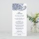 This navy Indian paisley dinner menu card is perfect for a modern wedding. The mehndi design features a lovely navy blue floral henna mandala and paisley motif. This menu can be used for a wedding reception, rehearsal dinner, or any event.