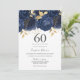 Navy Indigo Blue & Gold Floral 60th Birthday Party Invitation