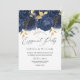 Navy Indigo Blue & Gold Floral Engagement Party Invitation