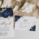Navy Indigo Blue & Gold Floral Wedding RSVP Card