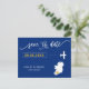 You chose a special place for your wedding. Now it's time to celebrate it with this keepsake save the date postcard, featuring a silhouette map and a tiny plane headed to your destination. To move the heart to the place of your wedding, click personalize and then "customize further.”