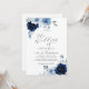Navy Light Blue Elegant Script Floral Wedding Invi Invitation
