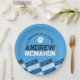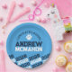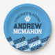 Navy Blue & Baby Blue Pawprint Personalized Graduation Paper Plates - Half Repeating Congratulations