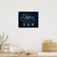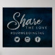Navy Luster Dark Blue Watercolor Design, with Silver Sparkle Typography, and beautiful watercolour background texture. With Modern Chic Script Fonts. A trendy & Luxurious style - Personalized Wedding Share the Love & Social Media Icons Hashtag Sign!