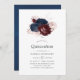 Navy, Maroon and Rose Gold Floral Quinceañera Invitation