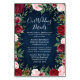 Navy Marsala Country Rustic Wedding Insert Cards - features a rustic navy blue wood background with greenery, roses and other floral elements in shades of blush pink, marsala, burgundy and more.