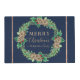 "Navy Merry Christmas Rose Gold Script Typography Placemat Home Decor." Rich deep navy blue background can be changed. Elegant, hand painted watercolor Christmas wreath with pine cones, holly leaves and berries with forest gathered foliage was created by Audrey Jeanne Roberts, an internationally known and licensed artist. Copyright.
