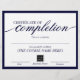 Modern Navy Blue Minimalist Certificate of Completion Awards.