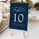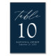 Trendy, minimalist wedding table number cards featuring white modern lettering with "Table" in a modern calligraphy script. The design features a navy background or color of your choice. The design repeats on the back. To order the table cards: add your name, wedding date, and table number. Add each number to your cart individually and check out when you're finished.
