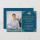 Plain white envelopes are included with paper invitations and will come to fit the invitation size you select. If you don’t need the envelopes, you may choose to not receive them by selecting the dropdown below "Envelopes" and choosing "None." If you’d like to have a design on your envelopes, you can browse all of these available envelopes to find the design that complements your Navy Modern Graduation Golden Script With Photo Invitation.