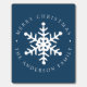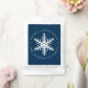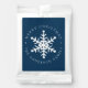 Festive holiday hot chocolate packets featuring a hand-drawn white snowflake encircled by your custom greeting and family name in white lettering on a navy background. The personalized hot chocolate packets are perfect to use as stocking stuffers and holiday party favors.