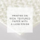Our most popular paper is the Signature Matte Paper. Its sturdy 18 pt weight and natural feel make it the ideal choice for timeless, sophisticated events.