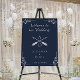 Personalize a unique welcome sign for wedding guests with a Navy Monogram and Arrows Wedding Welcome Sign. Sign design features crossed arrows and monogram placement adorned with elegant corner flourishes. Personalize with the groom and bride's names along with the wedding date.