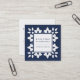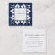 Chic square business cards feature a decorative Moroccan inspired pattern on the front side in classic navy blue and white, framing your name and business name or occupation in the center. Add your full contact details to the reverse side. A lovely choice for any occupation; sample shown for interior design professions.